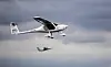 Elflyet Pipistrel Alpha Electro flyr foran hangaren på Gardermoen. Foto: Avinor.